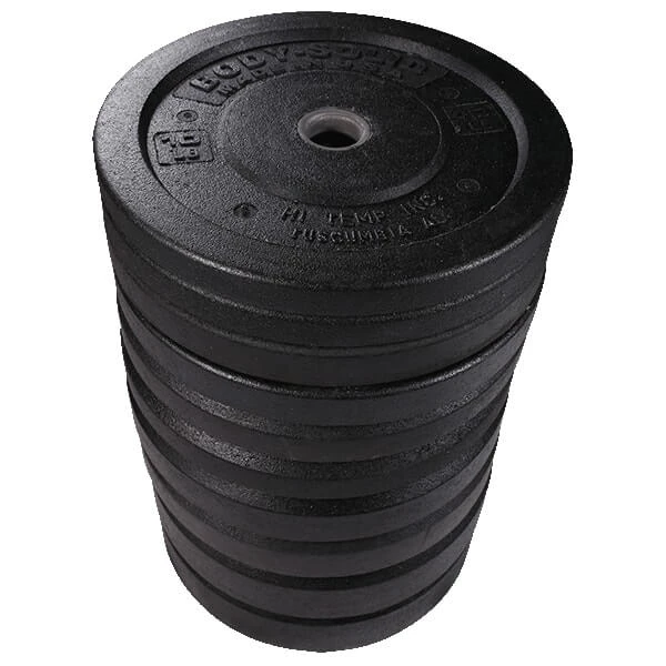 Body Solid Full Commercial /Premium Bumper plates are Made in the USA with recycled materials and a Stainless Steel bushing for long life and durability. Made to withstand the abuse in any weight room environment, the Premium Bumper plates wont chip floors, are quieter and safer than cast plates. These durable plates are thinner than most bumper plates allowing users to load more weight on bars and weight carriage systems.