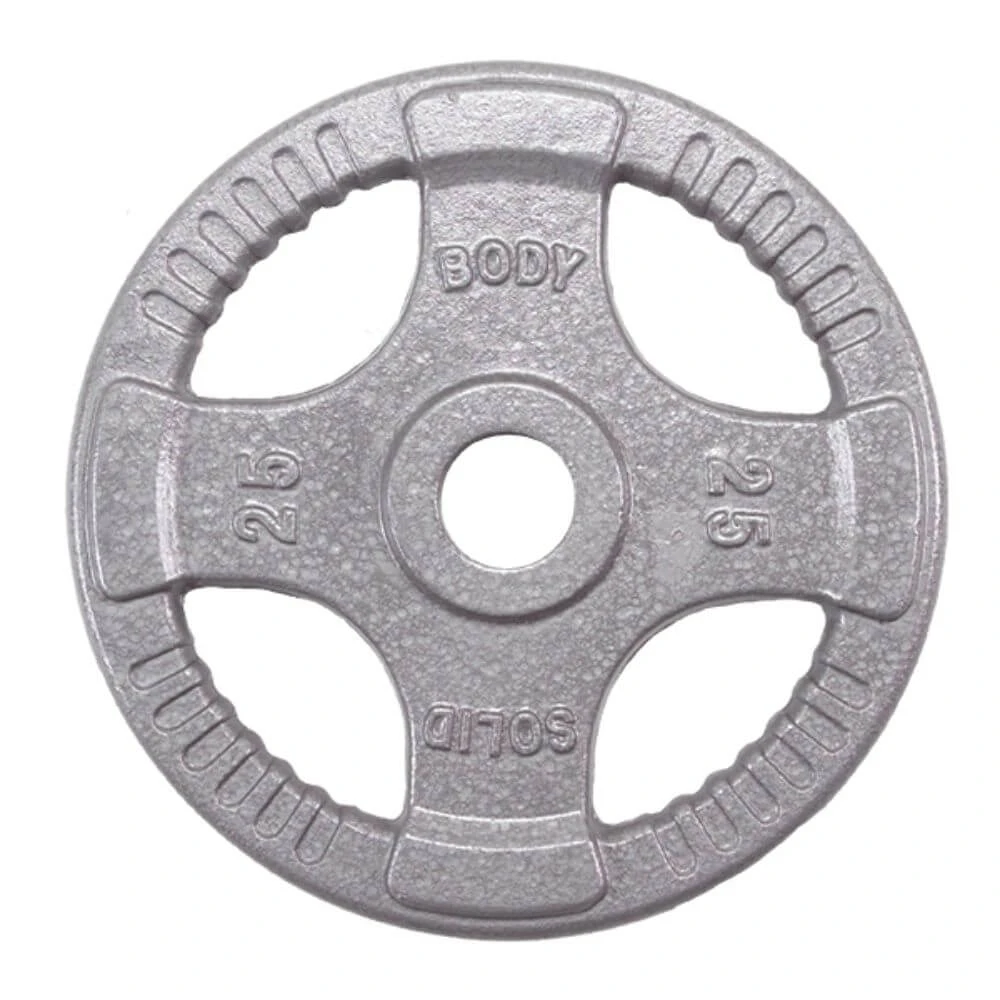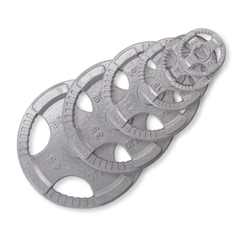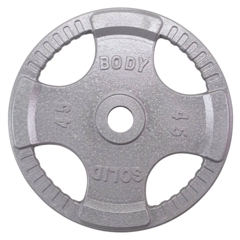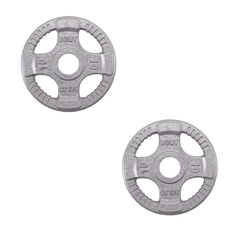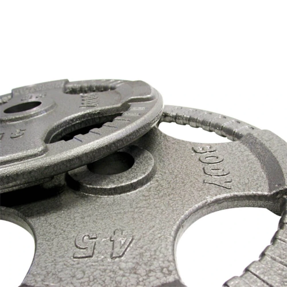Fully-integrated, Quad-grip design guarantees safer and easier performance than any other plate on the market. Body-Solid Steel Grip Olympic plates are cast from the highest quality gray iron, creating an exceptionally strong and durable product. Feature baked on hammertone gray finish that is durable, chip and rust resistant. Heavy lifting has never been easier or safer.