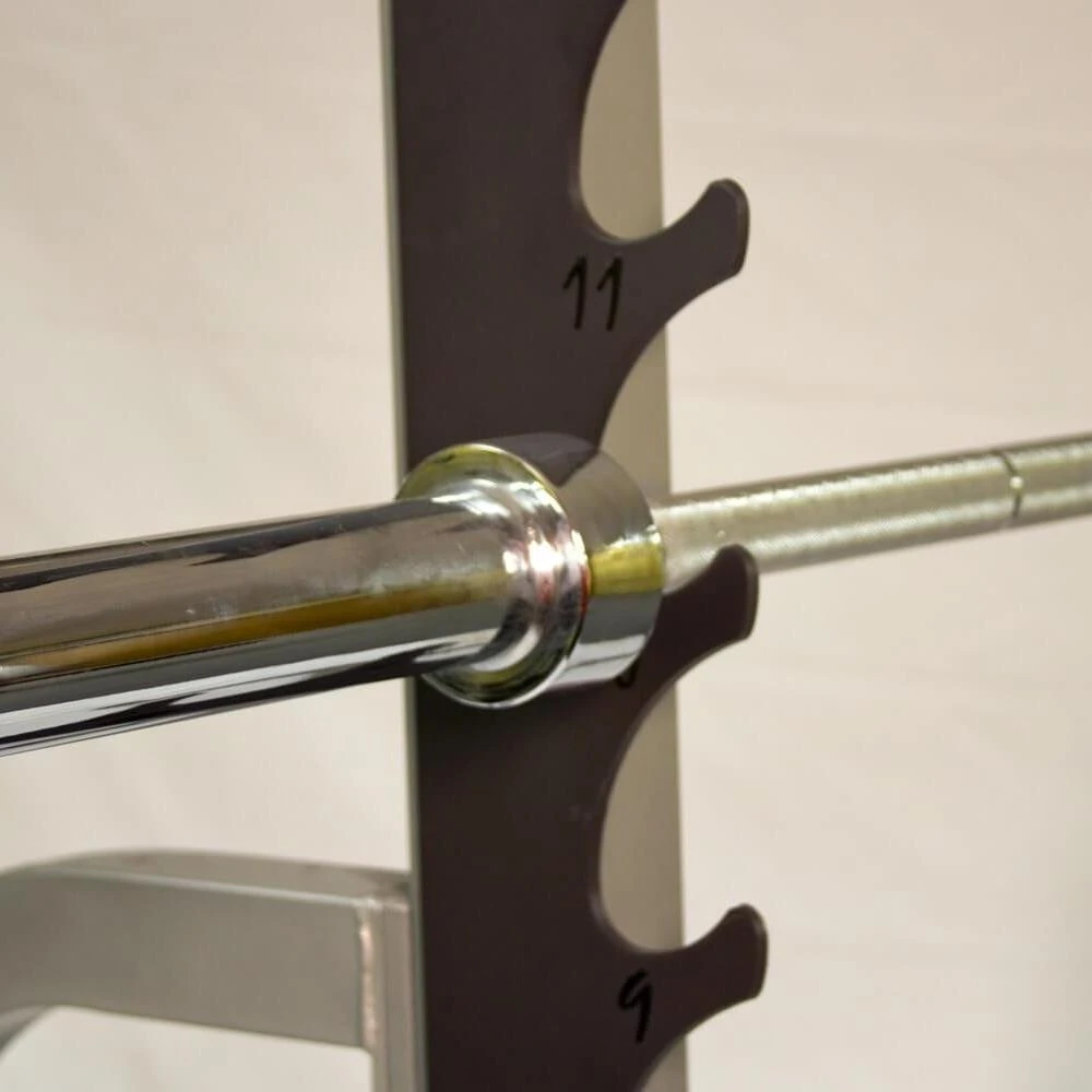 - 14-position gunrack can handle over 1,000 lbs. and gives the user the ability to walk the bar up and down without removing plates