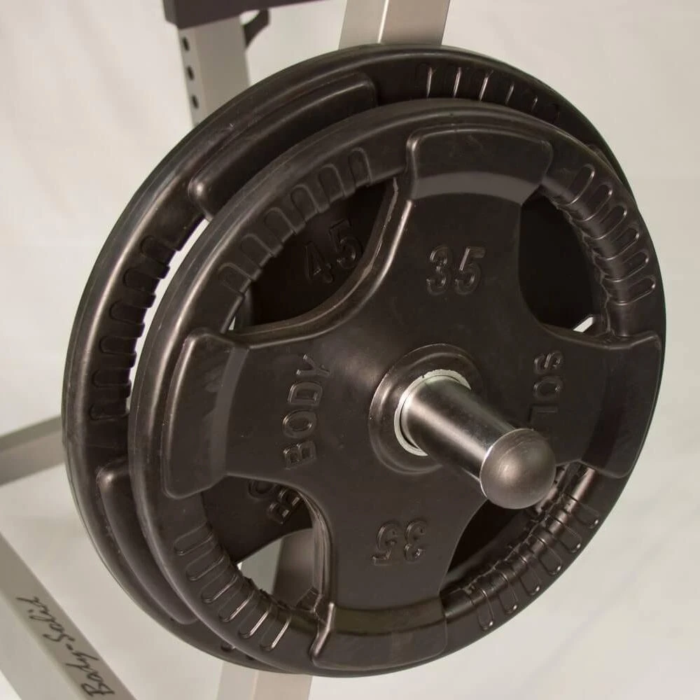 - Features 4 Olympic storage posts that suspend weight plates for quick and easy access while keeping your workout area organized