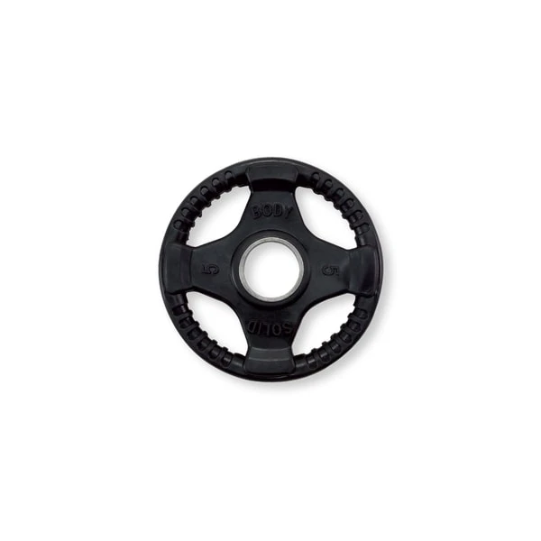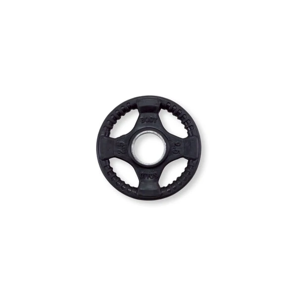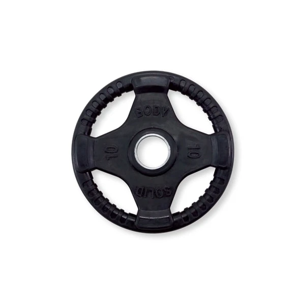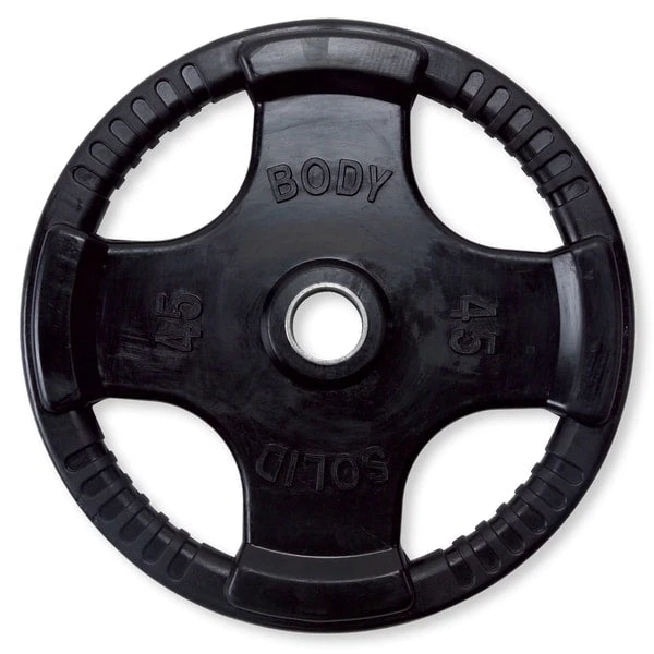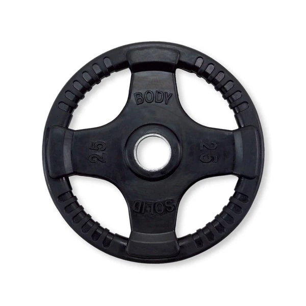 Body-Solid Rubber Grip Olympic Plates surpass competitor’s weight plates in quality, accuracy, reliability and price. Quad-grip design guarantees safer and easier performance. Body-Solid Rubber Grip Olympic Plates are encased in durable, heavy-duty rubber to prevent scuffing or damage to equipment, walls or floors. These plates feature an integrated metal sleeve providing a smooth, secure fit onto any Olympic bar.