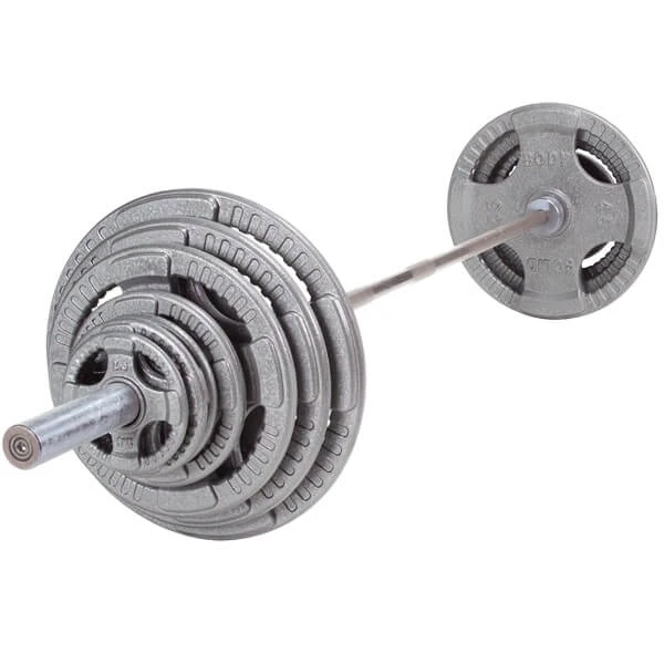 Body-Solid Tools Steel Grip Olympic Plate Set with Barbell OST