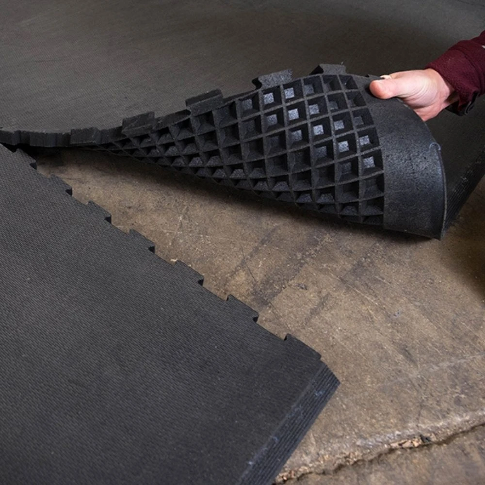 The SPRPLATFORM’s texture is non-porous and non-absorbent making it both resistance to bacterial growth and easy to clean. Beveled edges are molded into the mat on all four sides allowing for smooth transitions and an aesthetically pleasing look. Heavy interlocking sections keep mats from shifting during movement. The molded waffled bottom can handle extreme weight drops and is perfect for high impact training.