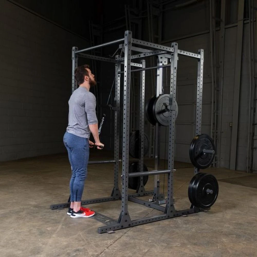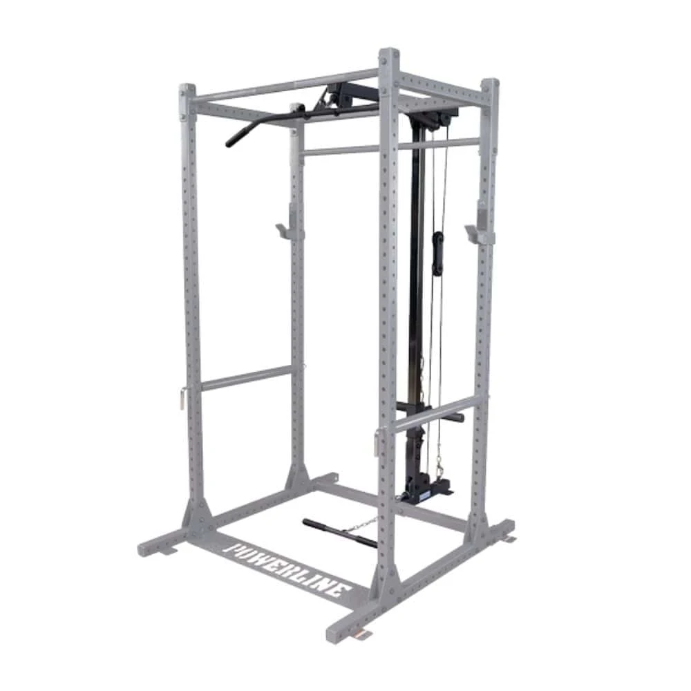 Turn the Powerline Power Rack into a complete home gym with the PLA1000 Lat Attachment. This optional attachment for the PPR1000 Powerline Rack features high and low pulley access with a no-cable-change design. The PLA1000 allows users to perform lat pulldowns, rows, biceps curls, shrugs and many more exercises in the comfort and stability of their Power Rack. Nylon-coated, aircraft quality cables ensure durability and safety during heavy use. The no-cable-change design makes it easy to swap handles for near unlimited workout variety.