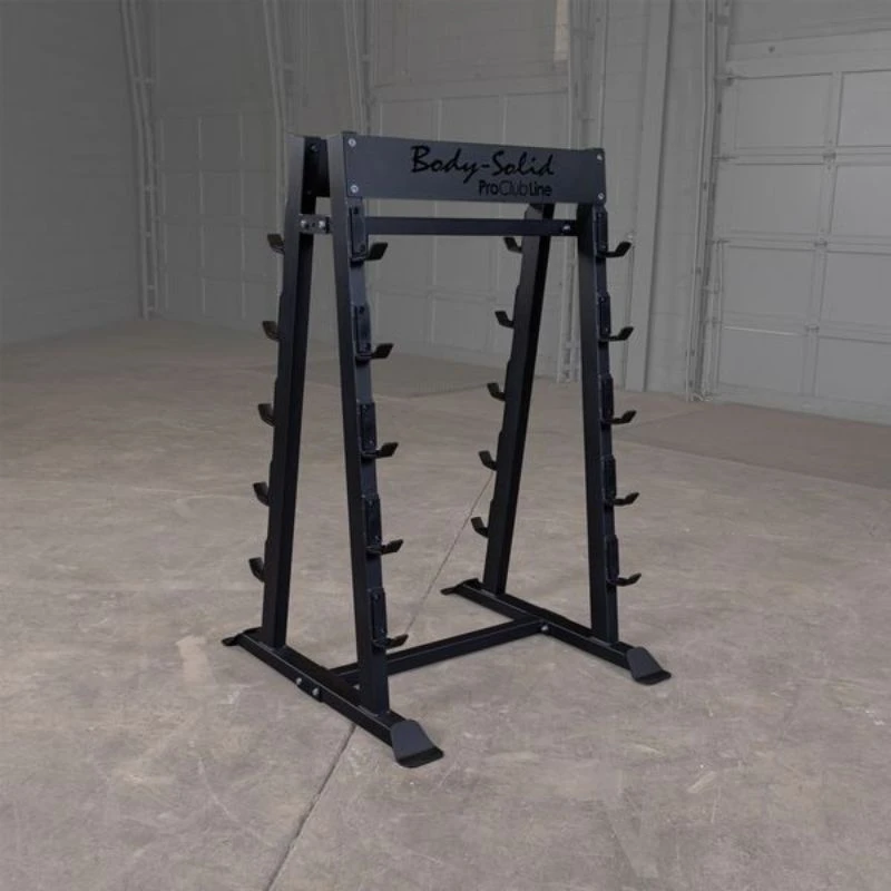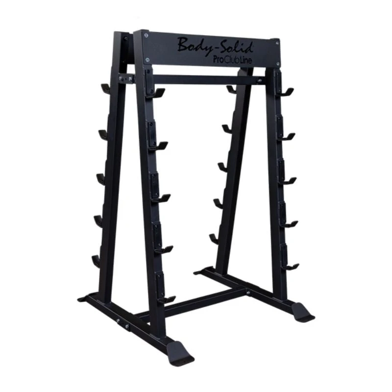 The Body-Solid Pro Clubline SBBR100 Fixed Weight Barbell Rack provides convenient and easy-access storage for up to 10 fixed-weight barbells, including Body-Solid Tools’ SBB Straight Barbells and SBZ EZ-Curl Barbells.