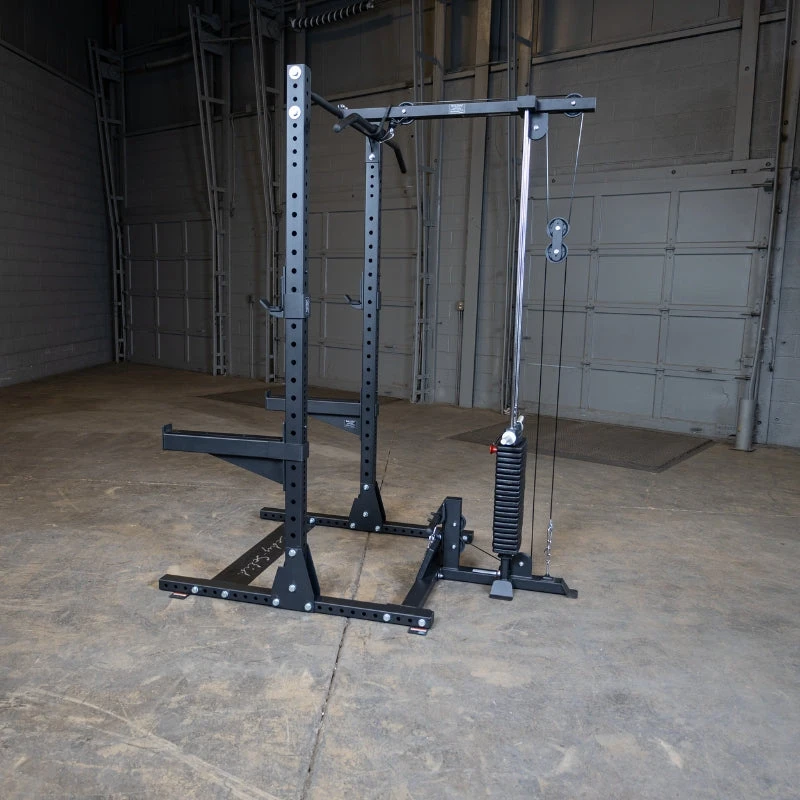 The SPRHLA Pro Clubline Half Rack Lat Attachment for SPR500 by Body-Solid