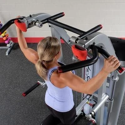 Body-Solid’s Weight-Assisted Chin Dip Machine allows users to perform dip, chin-up and pull-up movements more easily and effectively by counterbalancing the user’s bodyweight. The S2ACD is available with a 235lb weight stack. This counterbalanced weight allows for full range of motion, perfect repetitions and proper form regardless of the user’s current fitness level.The S2ACD features two wide lat pull-up grips, both neutral and traditional for exercise variety. The unique close grip chin up bar folds out of the way for the other exercises and also features both a neutral and traditional hand grip positions.