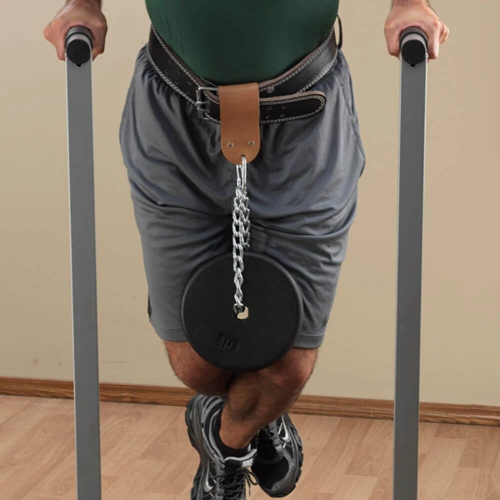 Attaches to any type or style of weightlifting belt. Constructed from top-grain leather. Increase the effectiveness of dips, chis and lunges by adding resistance beyond your own body weight.