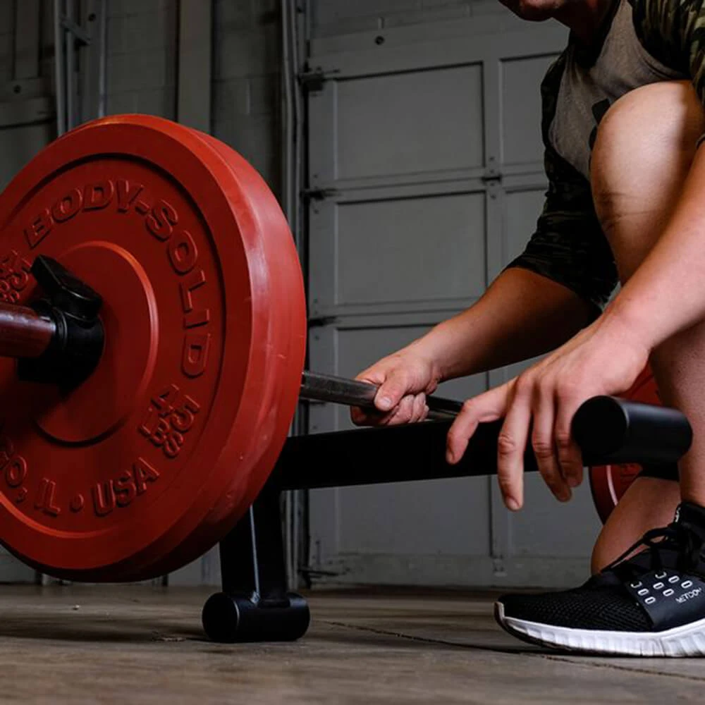 The Body-Solid Tools BSTOBJ Oly Bar Jack allows users to elevate their Olympic barbells efficiently and easily for safe and simple weight plate loading and unloading. The Body-Solid Tools Oly Bar Jack is great for swapping out weight plates during deadlifts and other heavy floor-starting lifts. The Oly Bar Jack can be used as a single to elevate one side of the bar or combine two BSTOBJ Oly Bar Jacks to elevate the entire Olympic bar. Constructed with 11-gauge steel and heavy-duty plastic coating to protect bars and offer peak durability.