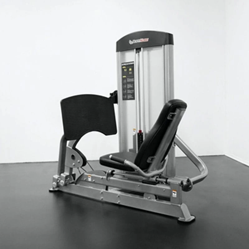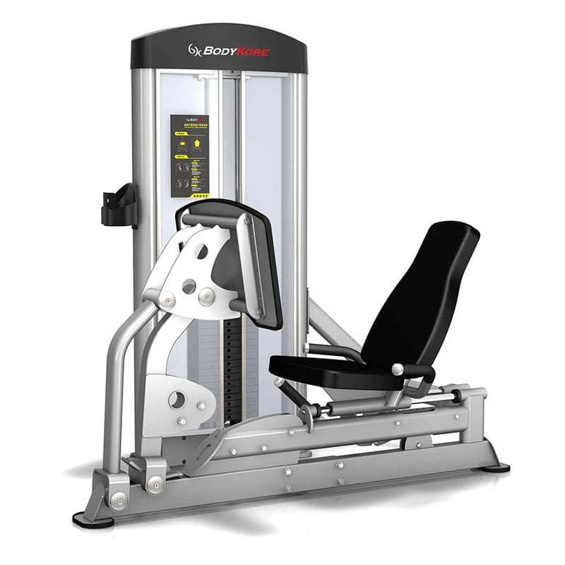 BodyKore Isolation Series Leg Press/Calf Extension is a selectorized leg press machine. The horizontal seated leg press is built with a hinged press plate that allows leg pressing and calf extensions done in the one motion. The machine is equipped with a 220lb weight stack.