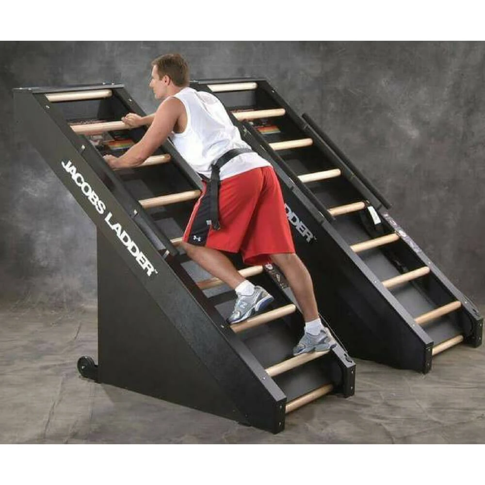 Jacobs Ladder is an innovative cardio machine with ladder-type rungs on a non-motorized continuous treadmill. It’s self-paced, so the faster you go, the faster it goes. Jacobs Ladder is preferred by pro football teams, the FBI, the Army, the Navy, West Point and numerous Division I universities to improve their strength and conditioning programs