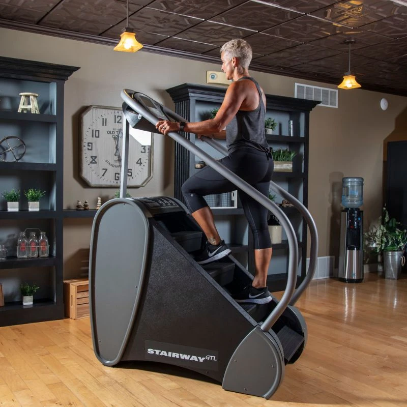We not only removed the waist belt – so the user controls the speed from the display – but we left it self-powered. It also is impossible to cheat. It’s unique closed loop control keeps the speed level even when you are tired and leaning on the handle. It is a revolutionary stair climber not only in speed control but it maintains the size of Stairway making it available to fit where other stair climbers won’t. Stairway GTL is easy, simple and smart!