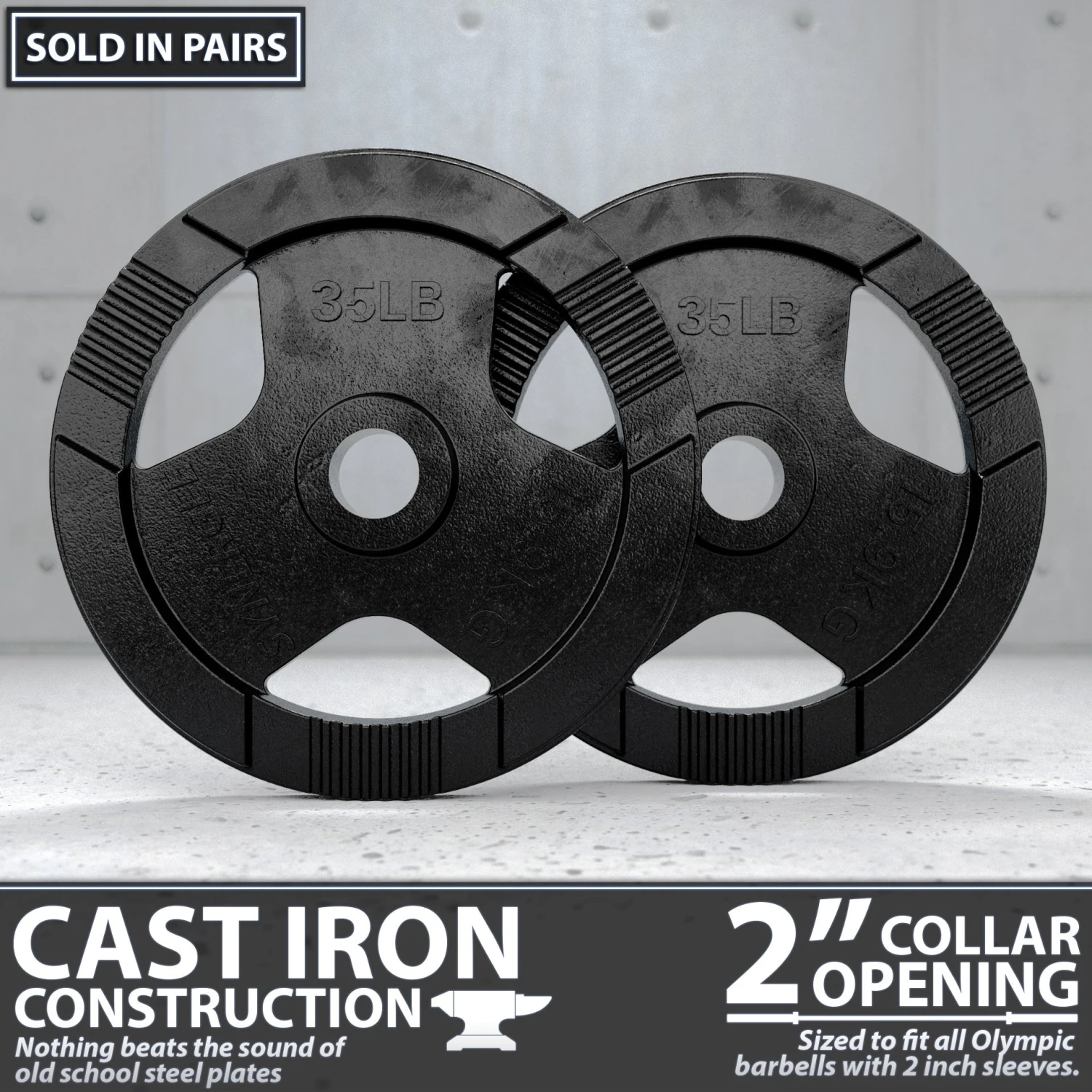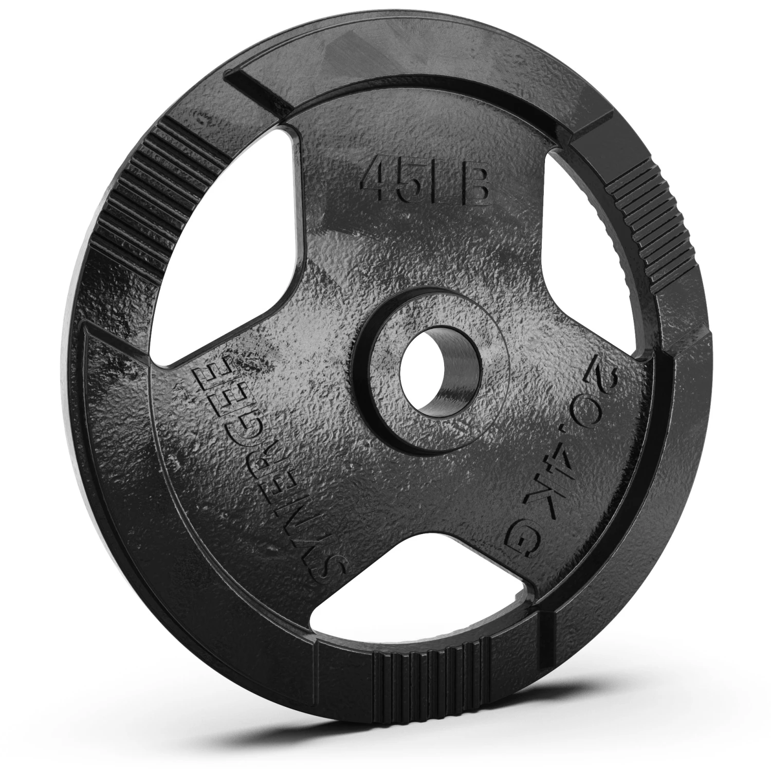 Our Weight Plates are built tough to make you stronger. These all metal plates are designed with reliable grip! Each plate has 3 cut-out grips for easy loading and unloading onto a barbell.