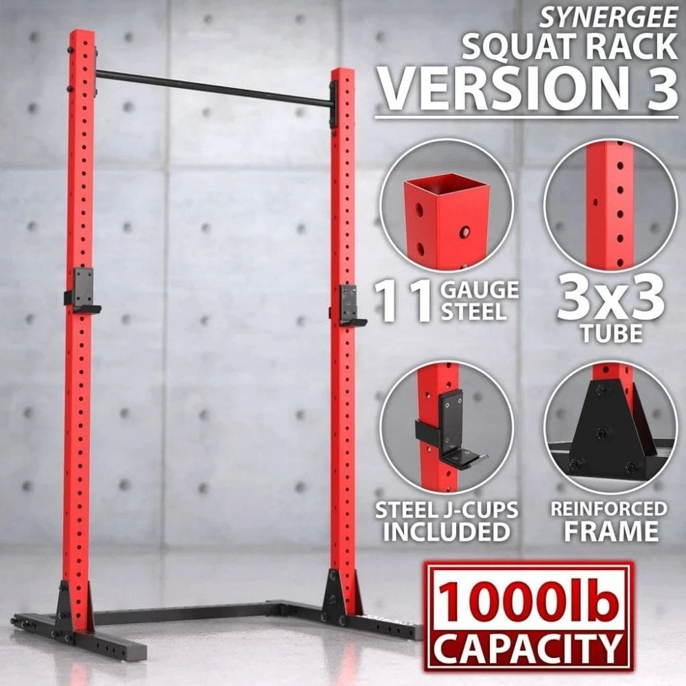 Our strongest Squat Rack YET: The Synergee V3 Squat Rack! Affordable? You bet. High quality? Heck yea! And now, tougher than ever!
