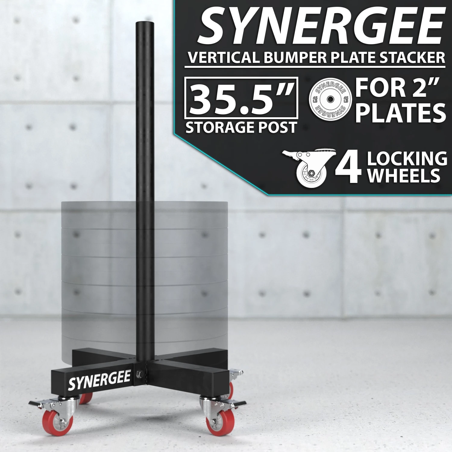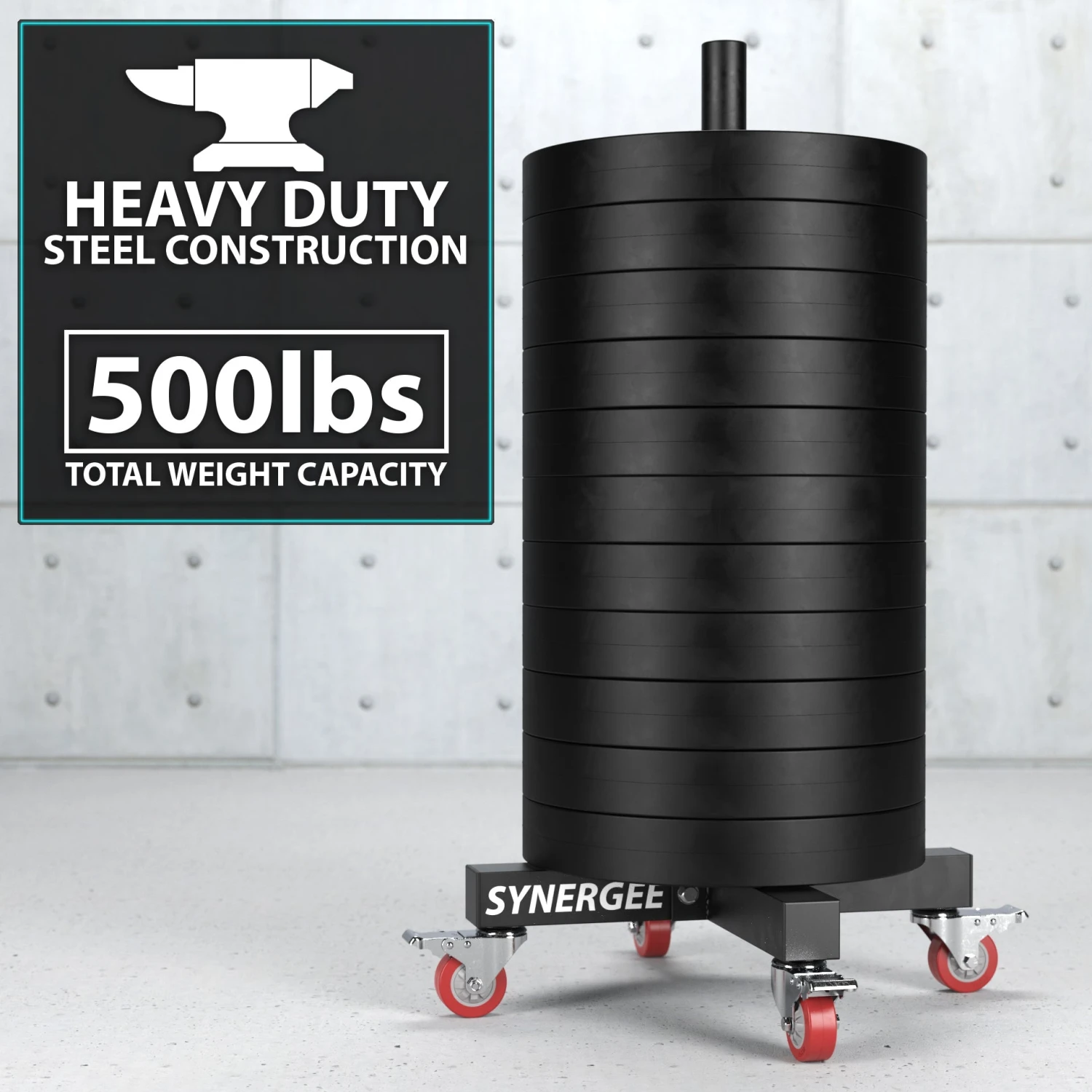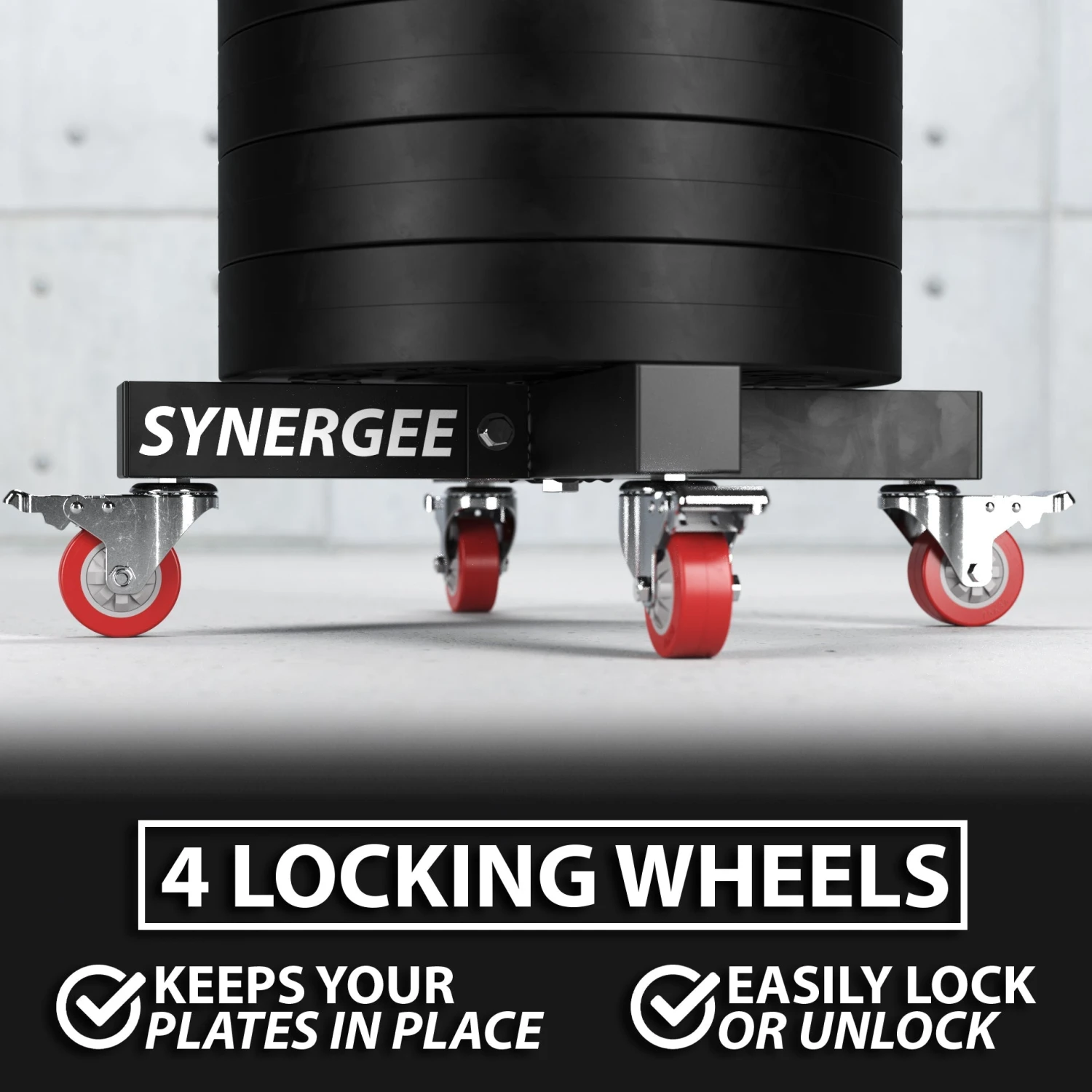With our Synergee Weight Plate Stacker, weight plate storage has never been easier and more efficient! Stack your plates on this wheeled platform for the most storage with the smallest footprint. Plus, with wheels that spin smoothly and lock when needed, your plates can be brought out for a workout and tuck it away when you are done!