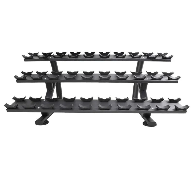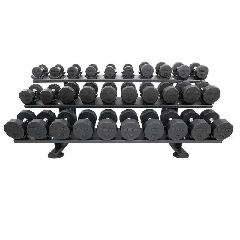 TKO’s 15 Pair Dumbbell Rack is a three-tiered, commercial dumbbell rack designed for TKO 829TR and 830US series dumbbells as well as any round head dumbbells. Protective nylon dumbbell saddles protect the dumbbells from excessive wear and tear and come with an integrated lip removing traditional angle iron to create a pinch free zone. This rack is great for organizing your dumbbells and keeping your workout area clear!