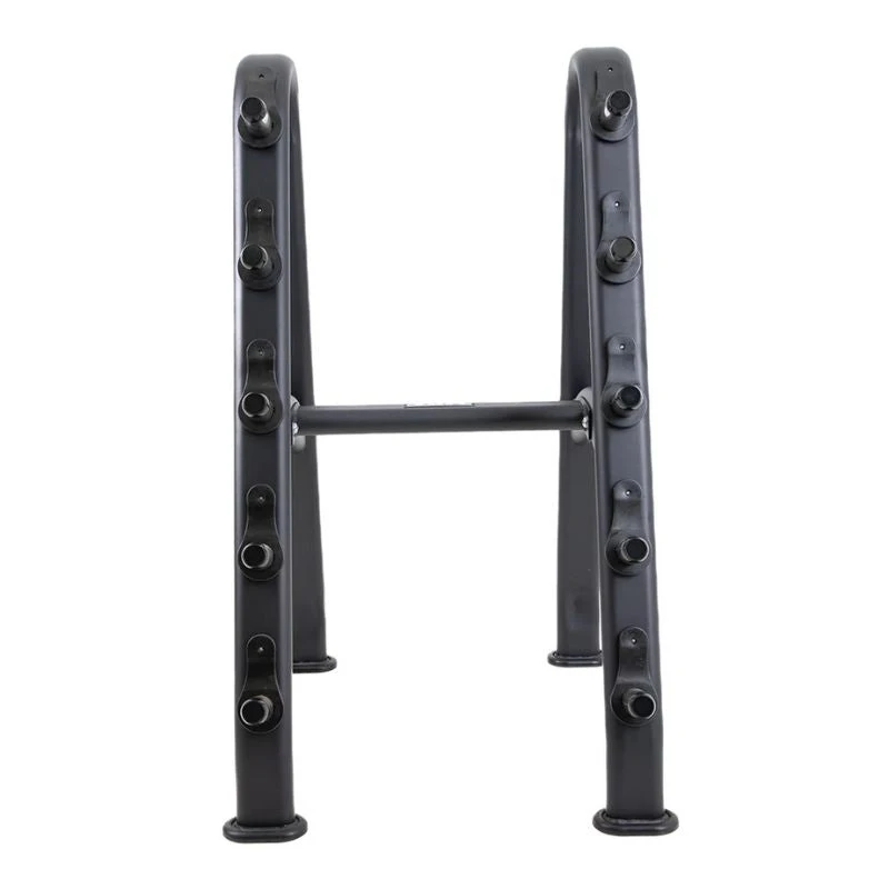 TKO’s Barbell Rack holds any combination of 10 barbells from 20 through 110 lbs., safely and securely. This rack is constructed of heavy-gauge steel with a powder coated finish and stainless steel bar holders. The wide angled, A-frame design provides maximum stability and the horizontal configuration allows for easy user access.Â
