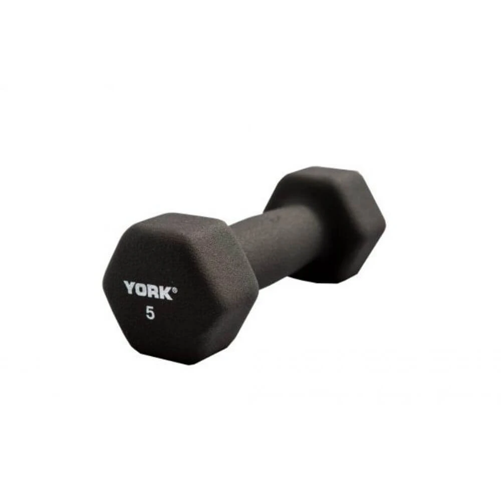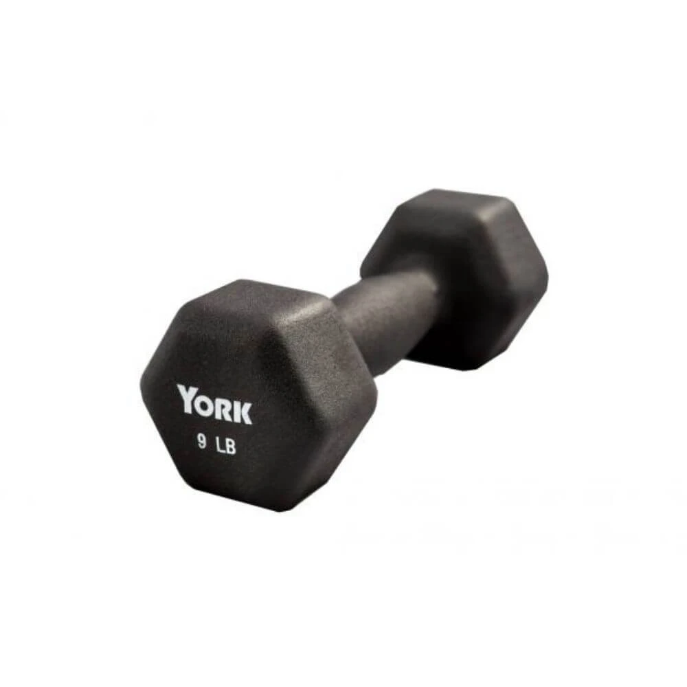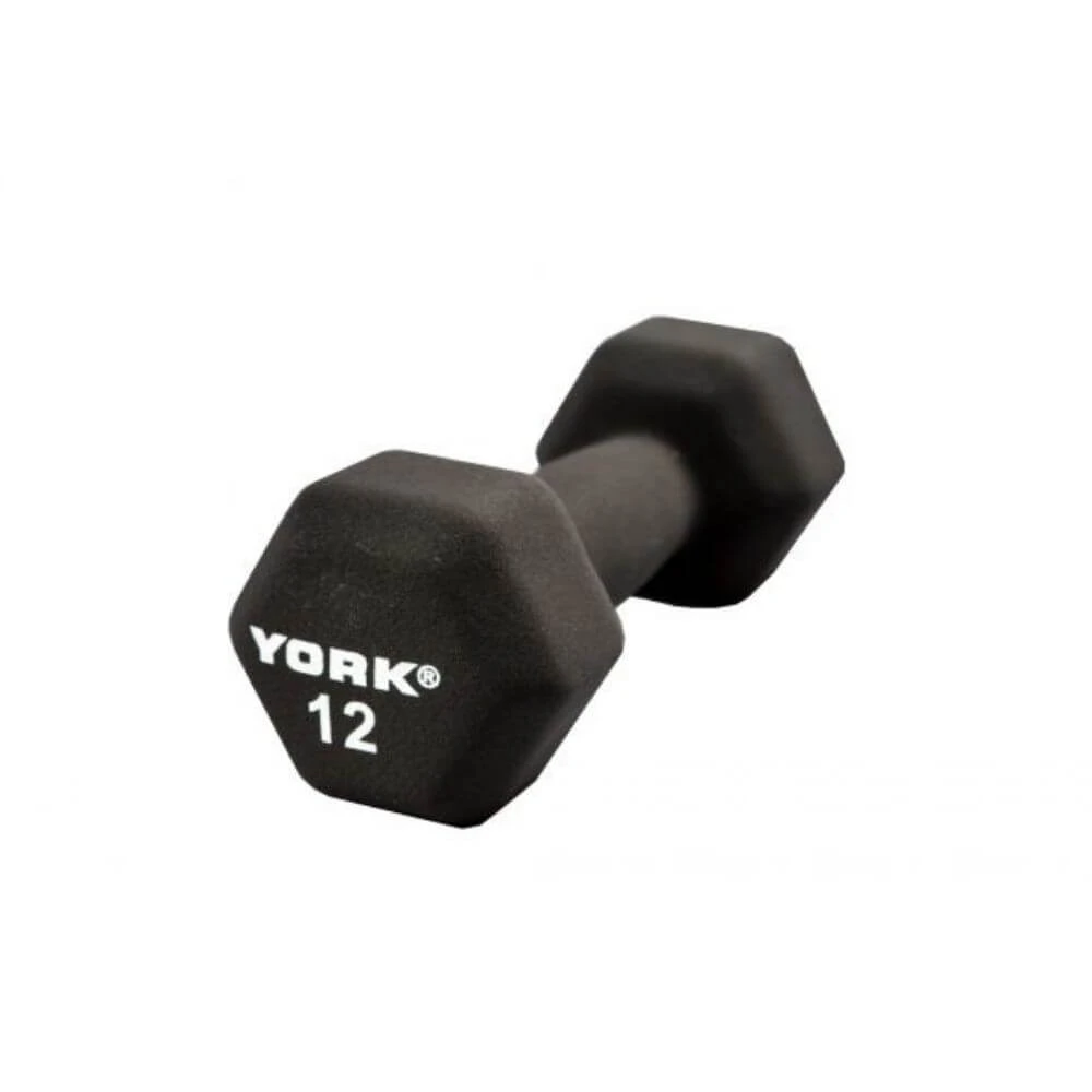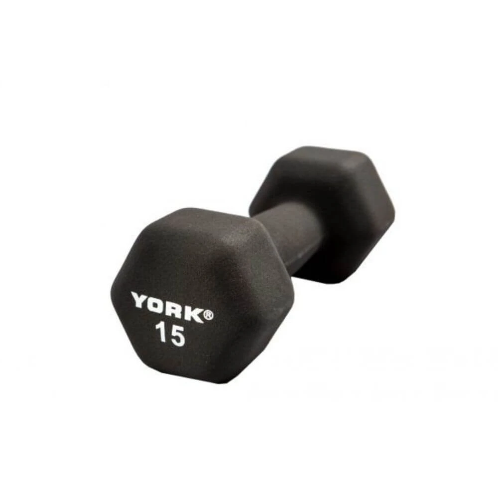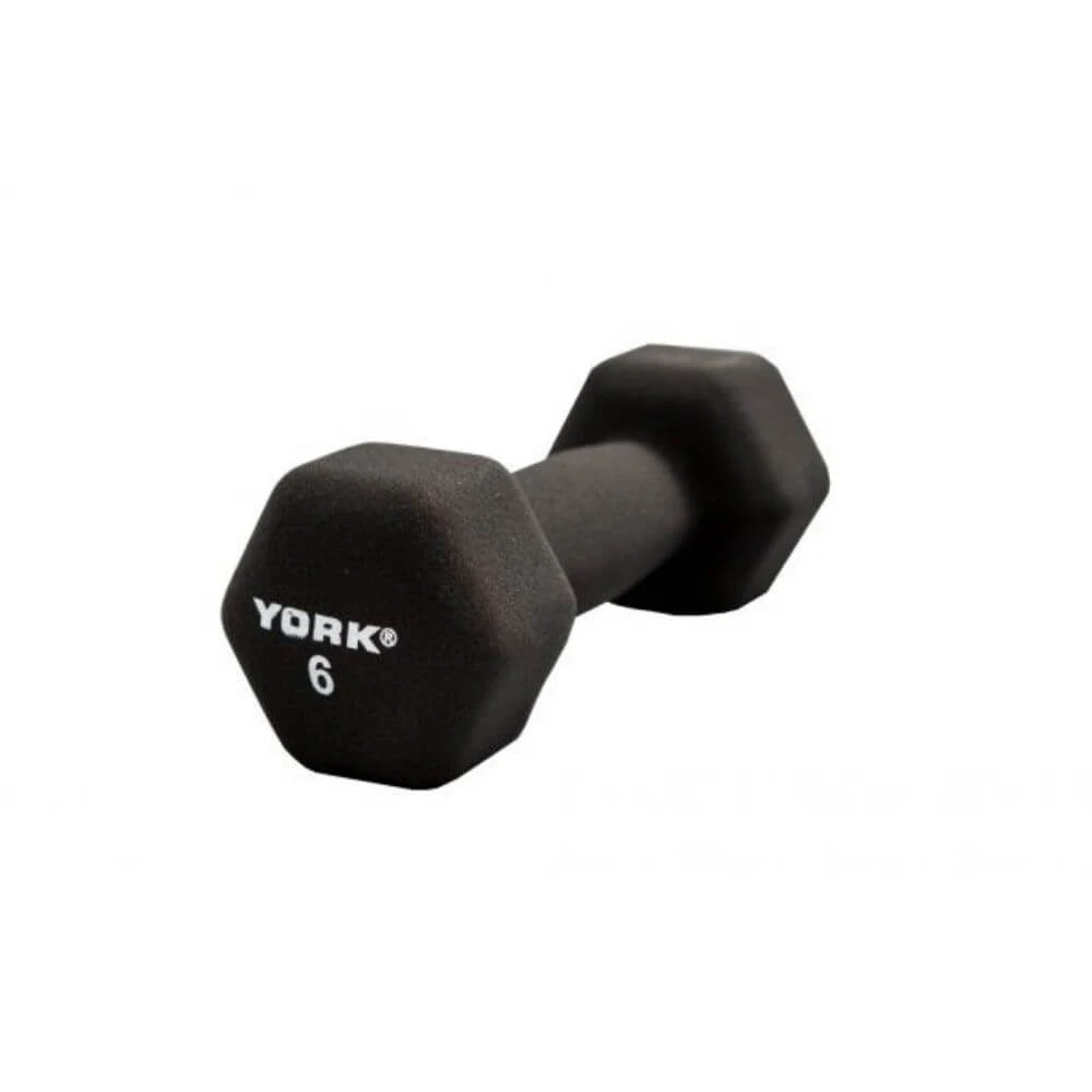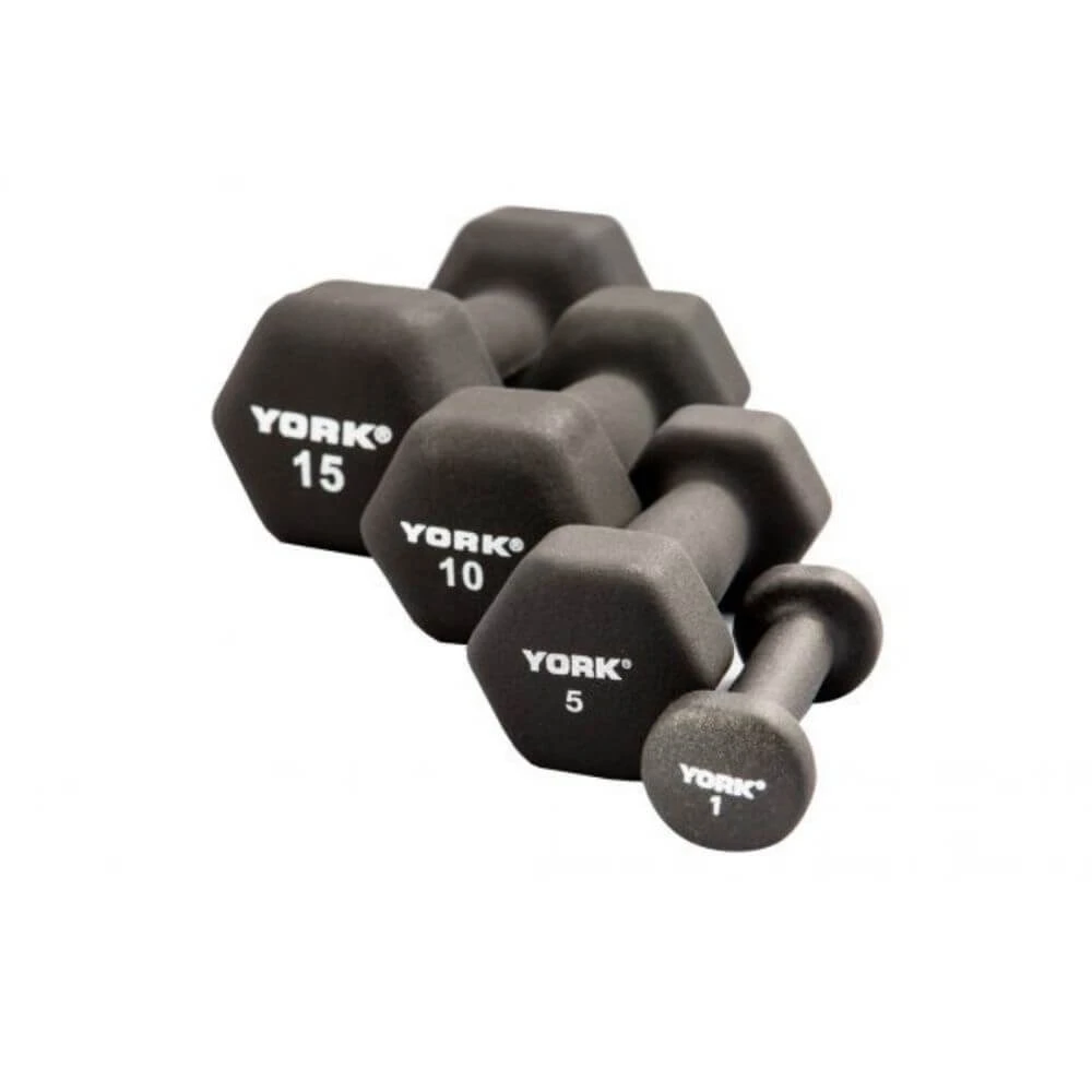 - The York Neo Hex Fitbells are available with a thick black neoprene coating