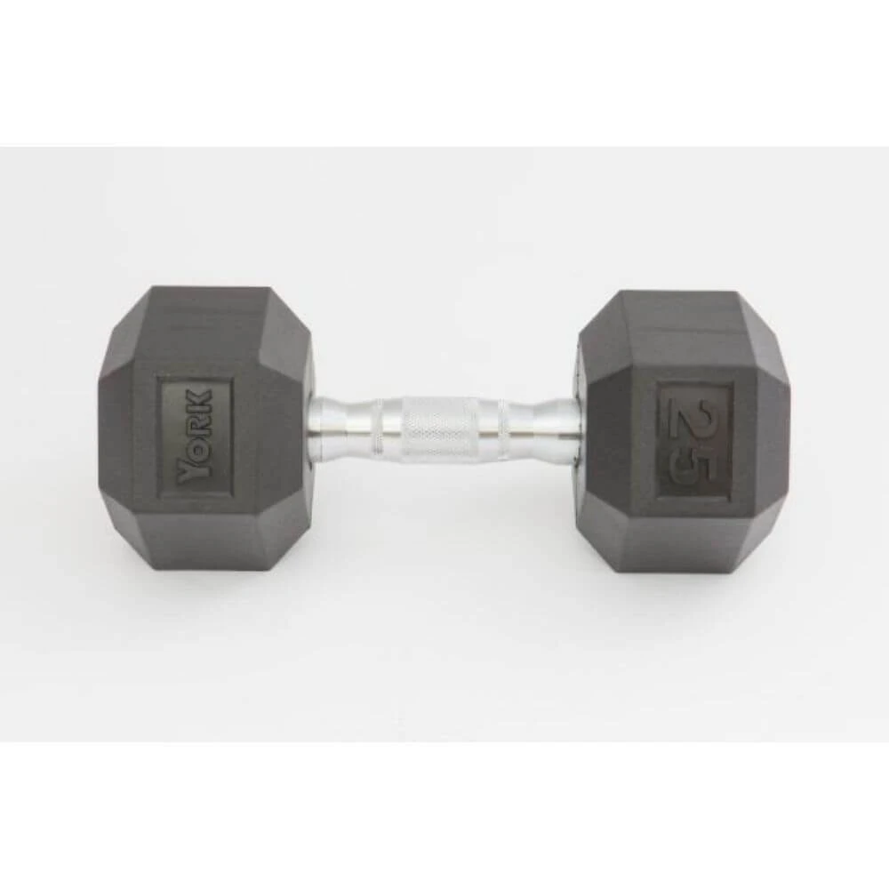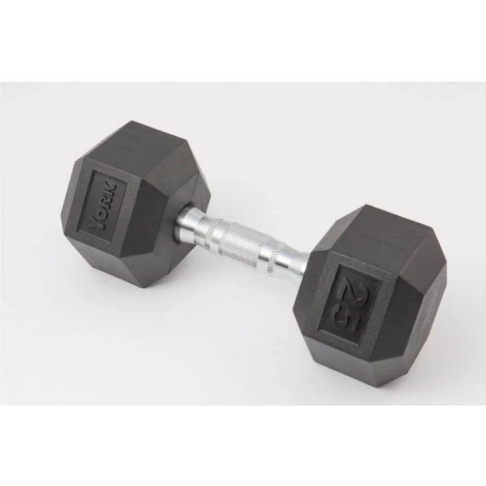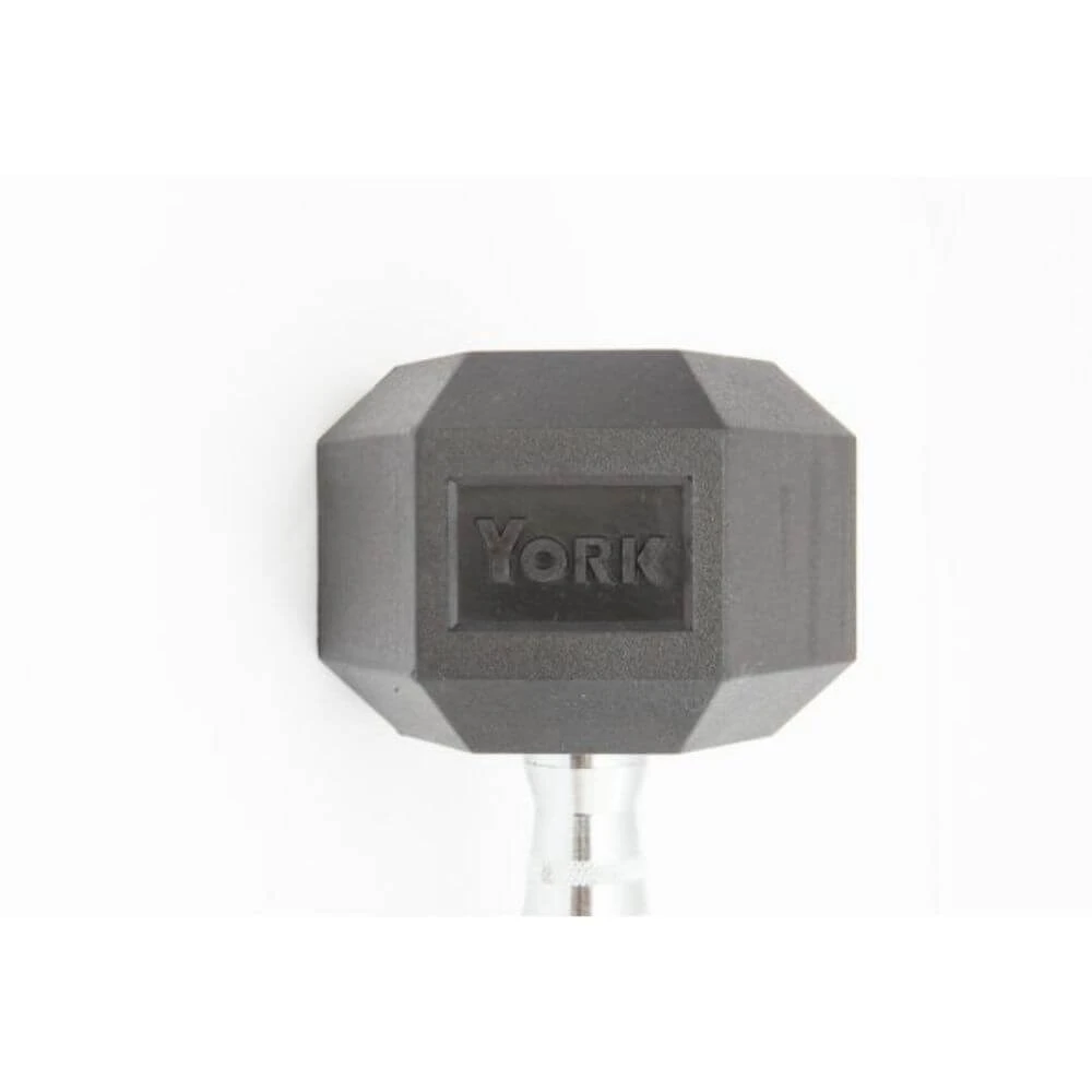 - Due to their hexagonal shape, the York Fitness Rubber Hex Dumbbells do not roll away when placed on the ground